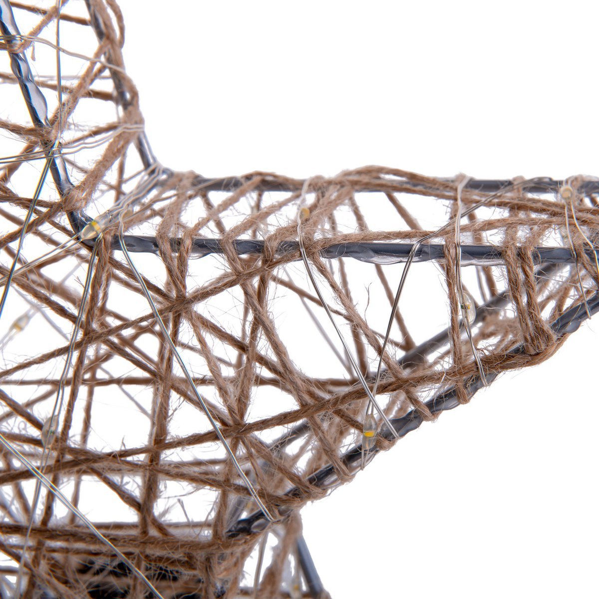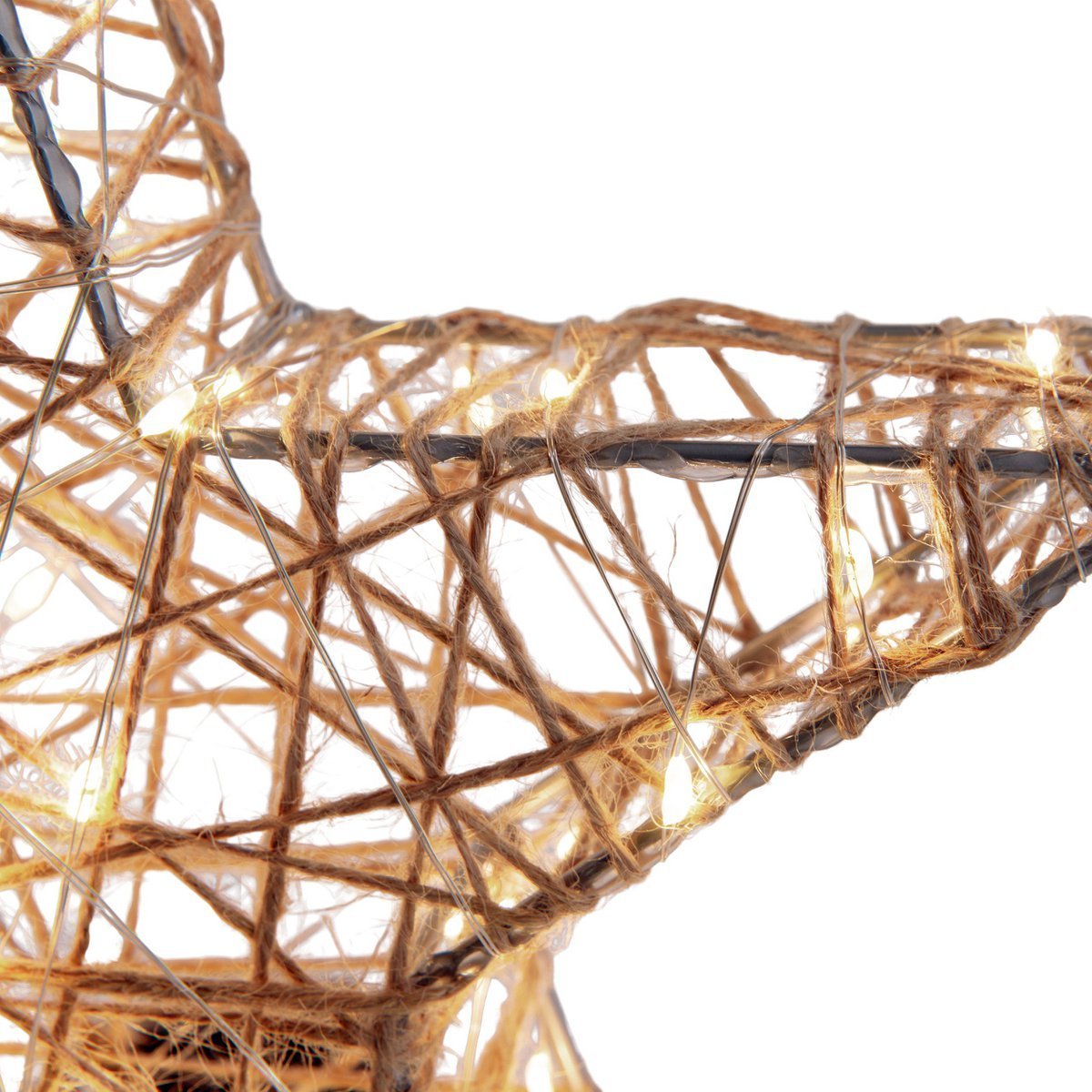 De 2 set LED LED-kerstdecoraties "Metallstern" bestaat uit een tweedimensionaal draadframe, dat is gewikkeld met hennepkoord en feeënlichten. Vanwege het snoer zien de sterren er heel natuurlijk uit en passen ze Miracles -balk in een even ingerichte omgeving.