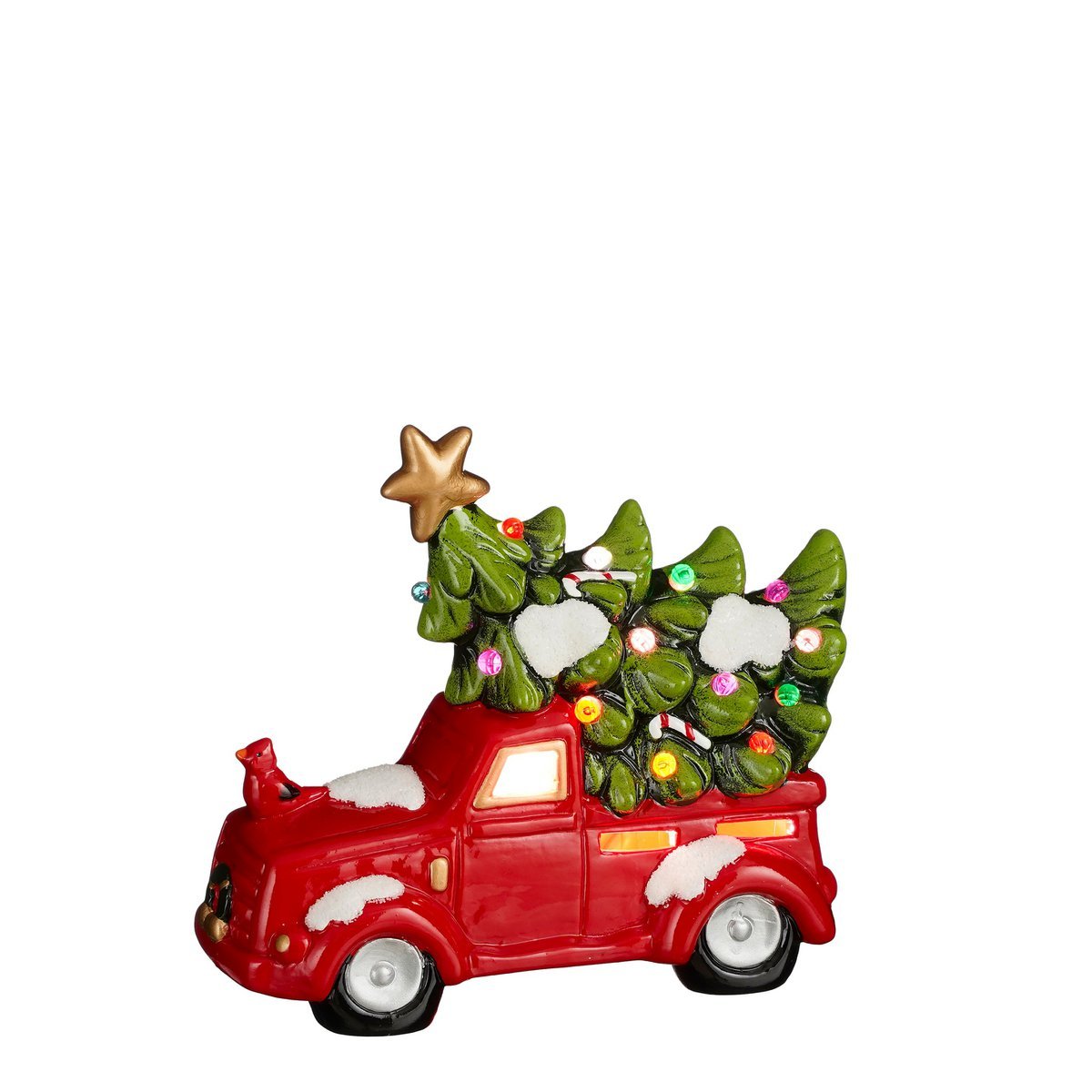 Decoratie Vrachtwagen met Verlichting - L21 x B10 x H17 cm - Keramiek - Rood