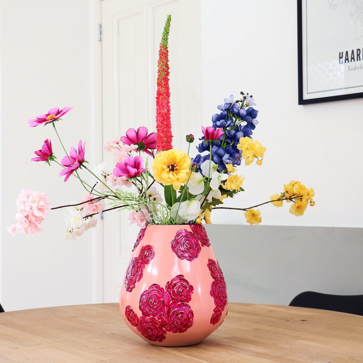 Handbeschilderde vaas - Tasman M roses Ø26 x H28 cm