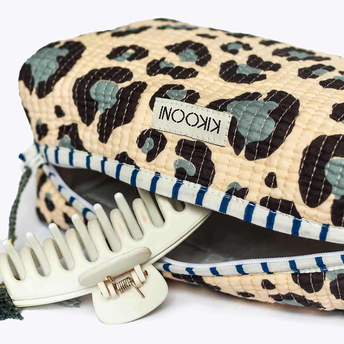 handgemaakte make-uptasje "Blue Leo" voor elke dag! Liefdevol handgemaakt en unieke details! De speelse en handgemaakte make-up tas "Blue Leo" is een prachtige aanvulling op de grote tas en je weekender. Omdat hij perfect in een handtas past, is hij perfect om je musthaves zoals handcrème, lippenstift en zonnebrandcrème georganiseerd en binnen handbereik te houden. Het beste: elke make-uptas is uniek en met liefde gemaakt in India. De medewerkers bedrukken de pure katoenen stof met de hand met behulp van houten stempels. Dit proces wordt blokprinten genoemd. Borduur de tas vervolgens met het bekende en traditionele Kantha-borduurwerk en maak de tas af met de kwastjesdetails aan de rits. De handgemaakte make-uptas "Blue Leo" is tot in het kleinste detail doordacht en onderscheidt zich zo licht als een veertje van de mainstream. Eerlijk, hulpbronnenbesparend en met een creatieve geest. Het bovenmateriaal is gemaakt van puur katoen. De binnenvoering is gemaakt van waterafstotend polyester. Een kleine productiefaciliteit in Jaipur, India produceert de geborduurde make-uptassen en eerlijke arbeidsomstandigheden. Bij de productie wordt het werken met grote machines vermeden, waardoor grote hoeveelheden water en elektriciteit worden bespaard. Het hulpbronnenbesparende proces weerspiegelt de ontspannen werksfeer. Wij hechten veel belang aan bijzondere individuele stukken die met liefde en creatieve geest zijn gemaakt en nog steeds worden gemaakt - ook met onze en uw steun. Veganistische tassen Bij het productieproces worden geen dierlijke producten gebruikt en de katoenen stoffen worden met de hand bedrukt met een houten stempel. Doordat de medewerkers het Kantha-borduurwerk van katoenen draden met een naaimachine aanbrengen en het polyester binnengedeelte met een naaimachine innaaien, ontstaat er een puur veganistisch product. Hulpbronnen besparen De productiefaciliteit vertrouwt vooral op het uniek mooie blokdrukproces, dat een traditie kent in Jaipur. De medewerkers drukken de motieven en patronen met de hand op de katoenen stoffen met behulp van grote houten stempels en natuurlijke, azo-vrije kleurstoffen. Bij de productie wordt alleen op kleine schaal gebruik gemaakt van machines, zoals strijkijzers en naaimachines, waardoor het kleine bedrijf veel water en elektriciteit bespaart ten opzichte van andere grote productiefaciliteiten. Details: Afmetingen (LxHxD): 25 cm x 12 cm x 11 cm Bovenmateriaal van puur katoen met kantha-borduurwerk en (blokprint) houten stempelprint met natuurlijke/azo-vrije kleurstoffen ruim hoofdvak sluit met een rits handgemaakte kwastversiering gevoerd met waterafstotend Polyester of Katoen Omdat de make-uptasjes allemaal handgemaakt zijn, verschillen ze allemaal van elkaar in de plaatsing van het patroon.