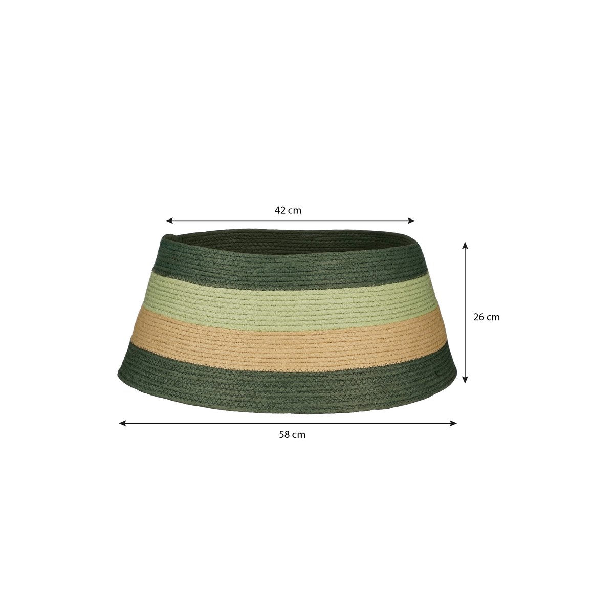 Tijdens het decoreren van je kerstboom kan de standaard, voet of kluit niet vergeten worden. Deze kerstboomrok van House of Seasons zorgt ervoor dat je dit op een stijlvolle manier doet! De kerstboommand heeft horizontale stroken in verschillende tinten groen. Het materiaal van kerstboom rok is gemaakt van een mix van FSC®-gecertificeerd papier. Dit geweven materiaal in combinatie met de kleuren zorgt voor een fraaie touch in de ruimte waar je kerstboom staat. De kerstboomhuls heeft een opening van 42 cm. Verder meet de kerstboom rok H26 x Ø58 cm.