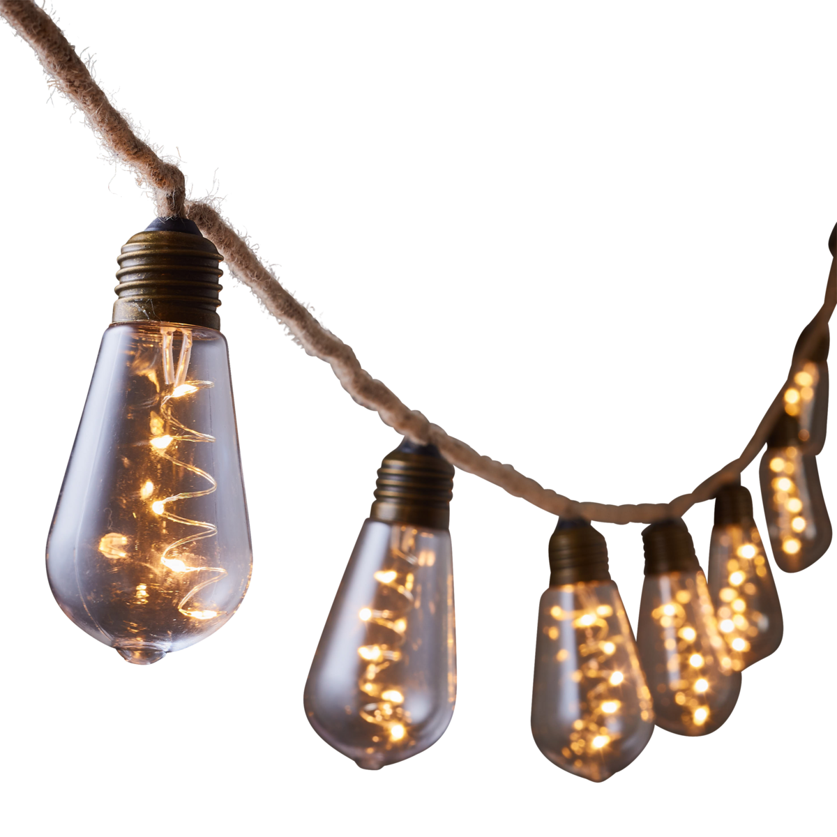 Met deze partyverlichting van Luca Lighting wordt elke ruimte in één klap gezellig. Het lichtsnoer is gemaakt van touw en telt 10 langwerpige lichtbollen met daarin 5 energiezuinige LED lampjes die een warm wit licht uitstralen. Sfeervol en natuurlijk tegelijk! Erg leuk om binnen op te hangen als kerstverlichting of buiten onder een overkapping of overdekt terras. De lichtbollen zijn gemaakt van plastic en hebben een afmeting van H9 x Ø5 cm. In totaal heeft het lichtsnoer een lengte van 3,15 meter met een aansluitsnoer van 5 meter tot de adapter. Let op: de lichtbollen zijn niet vervangbaar.