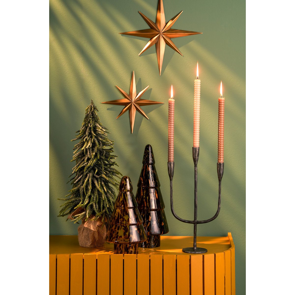 De Stretto kandelaar van House of Seasons heeft een klassiek design in een stoere, zwarte kleur. De vrij ruwe afwerking geeft hier een authentieke draai aan, waarin de Indiase roots goed zichtbaar zijn. Erg mooi voor op tafel, bijvoorbeeld tijdens het kerstdiner. Je kan drie dinerkaarsen in de kaarsenhouder kwijt met een diameter van 2,2 cm. De kandelaar is gemaakt van aluminium en heeft een afmeting van L21 x B9,5 x H40,5 cm.