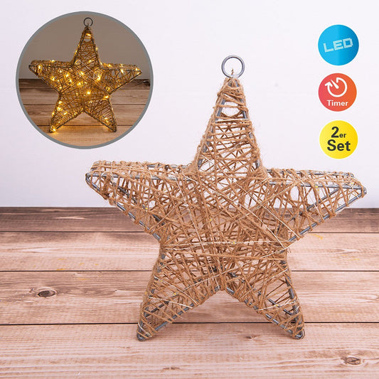2 Set LED-kerstdecoratie "Metal Star" Ø 25 cm-Christmas Decoraties gemaakt van metaal en textiel in de natuur, met stevig ingebouwde LED's