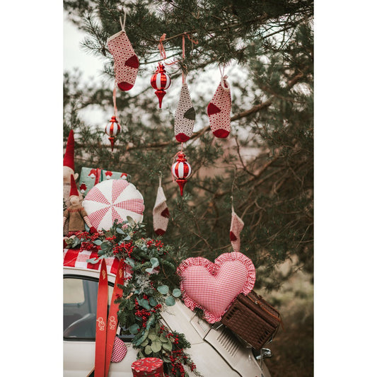"Rood geruit snoepje" patchwork kerstkussen, cadeau-idee voor de feestdagen